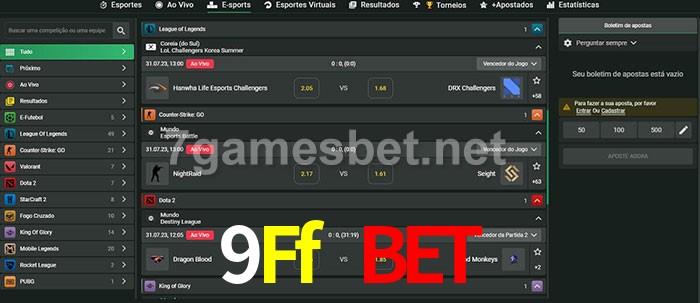O 9Ff Bet oferece uma grande seleção de opções de apostas em e-sports com probabilidades competitivas